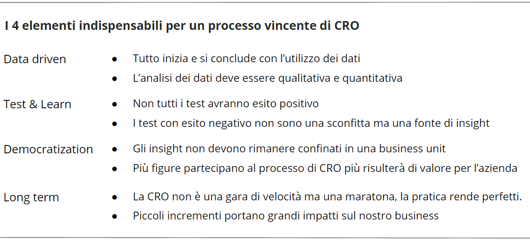 Gli elementi indispensabili per un processo vincente di CRO