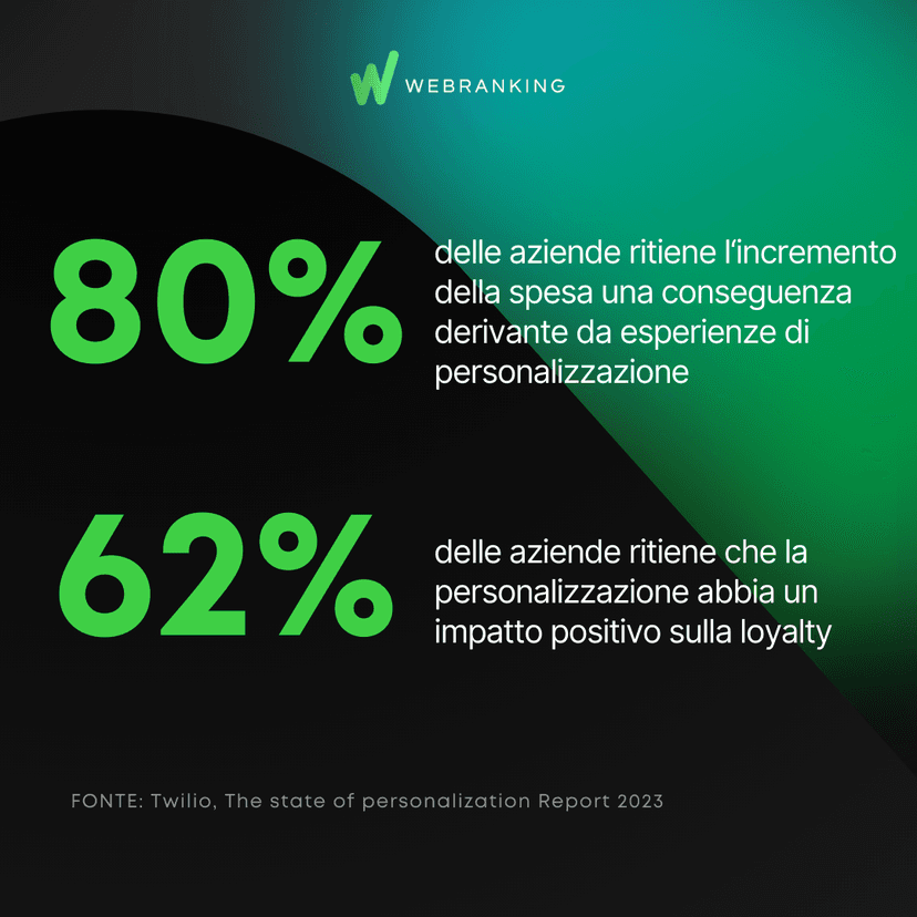 Se guardiamo all'adozione di modalità di personalizzazione dell'esperienza utente vediamo che, a livello globale, 7 aziende su 10 puntano su questo approccio considerando diversi fattori. Infatti, oltre ad un impatto positivo sulla customer loyalty e l'incremento della spesa che interventi mirati possono migliorare, le aziende stanno adottando l'intelligenza artificiale per far crescere il proprio business online.