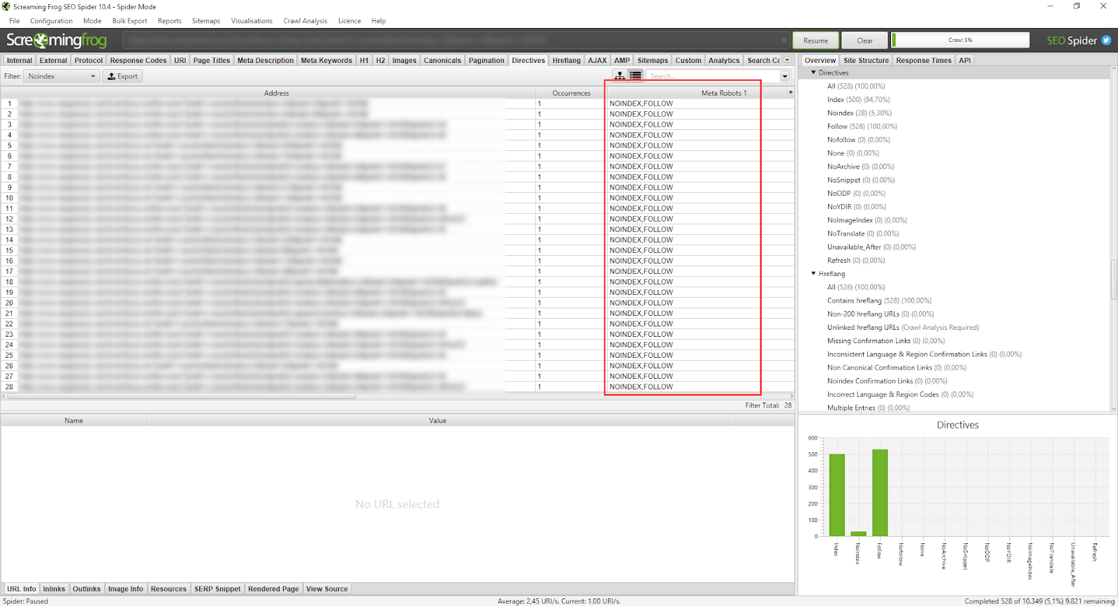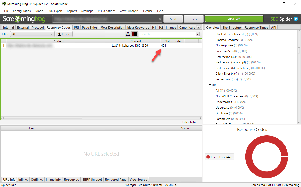 Il modo più semplice per verificare che i contenuti più importanti del tuo sito siano effettivamente indicizzabili è utilizzare Screaming Frog. Anche in questo caso sarà sufficiente inserire il dominio da analizzare nella finestra del software e lasciare che il crawler navighi tra le pagine del sito: