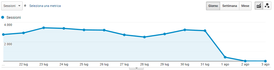L'esempio riportato è inequivocabile: il traffico del sito è realmente crollato e non si tratta di un problema di tracciamento dei tool analytics.