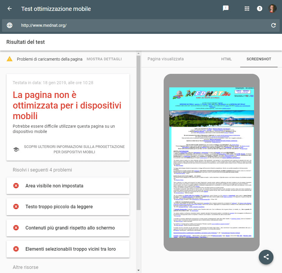 Potrà sembrare banale, ma ad oggi ancora molti siti non risultano ottimizzati per la fruizione da mobile. Per verificare se il tuo sito è mobile-compliant per Google ti basta utilizzare il Test di ottimizzazione mobile inserendo l'URL di una pagina, come nell'esempio che segue: