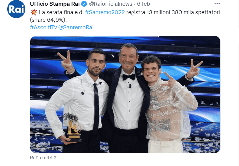 Fino all'avvento dei social, la celebrazione di Sanremo è stata dogmatica. Una messa solenne in pompa magna che ogni italiano subiva da casa davanti al televisore. Con Facebook si è trasformata in una situazione invece condivisa tra amici e familiari, infine, grazie a Twitter, tutta l'Italia ha iniziato a ritrovarsi in un enorme Bar Sport virtuale per commentare in real time con meme, battute e immagini.