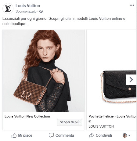 Inoltre, per raggiungere un nuovo pubblico, il brand può includere anche un messaggio aggiuntivo relativo ai suoi valori; un'opzione possibile tramite le "card statiche", ovvero preview in formato immagine o video che anticipano il carosello prodotti.